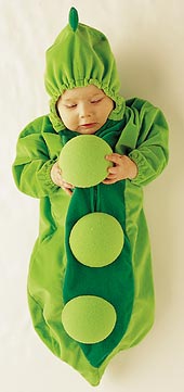 I like the butterfly....but they are both cute! My neighbor dressed her baby in the pea pod costume last Halloween!