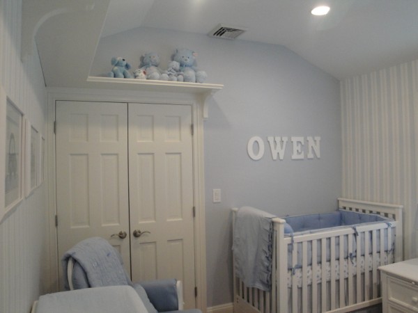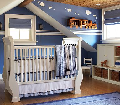 I was team green and did white distressed furniture from PBK. I love white furniture for baby boys with navy blue accents.