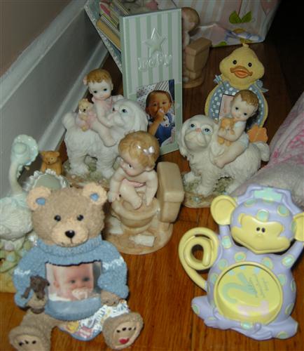 It's about 15 mini baby bags & 15 mini picture frames/little statues.