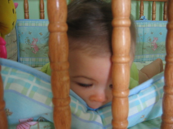 Ok...playing peek-a-boo in her crib on 7/31 Image Attachment(s):