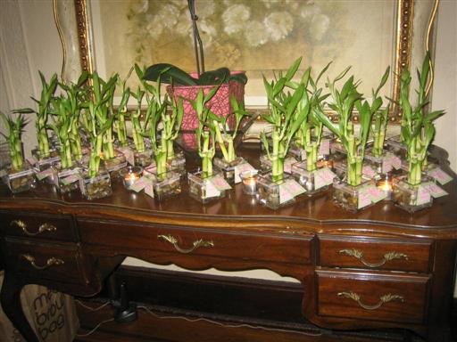 My girlfriend made these bamboo bridal shower favors for my shower. She got the bamboo on ebay and the stones at Michael's craft store. They were a huge hit and I am glad to say mine is still alive & thriving. (Shower was in April). Image Attachment(s):