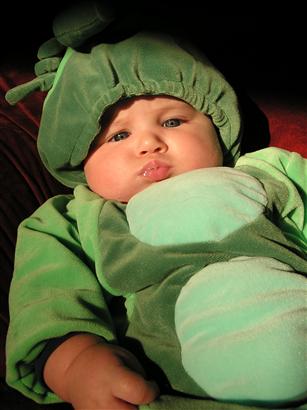 We didn't put Jesse in a costume, just a Halloween themed outfit. The last two are close-ups of his butt and the bottom of his feet (they say "boo" on the bottom). Here's my little pumpkin: Image Attachment(s):