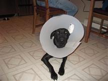 Aw, poor doggie !! He's so cute w/ his little cone head