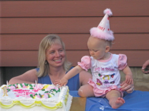 I always had long hair (bra strap) and curly. I cut it to about shoulder length when after our honeymoon. Then when I had DS it didn't curly as much, it was more very wavey. I still had it shoulder length maybe a little longer. Then after I had DD it was a little longer but straight (hormones). I cut it in April and then I cut it shorter in May and I love love love it! I have never received so many compliments on my hair before. It is so easy for me to do also. In 12 minutes (I timed it ) my hair is done. If I go over with a flat iron then it takes another 10 minutes but then it lasts about 3-4days. Here is a before (not the best, I am in the pink long sleeve shirt) and after which was my May haircut.