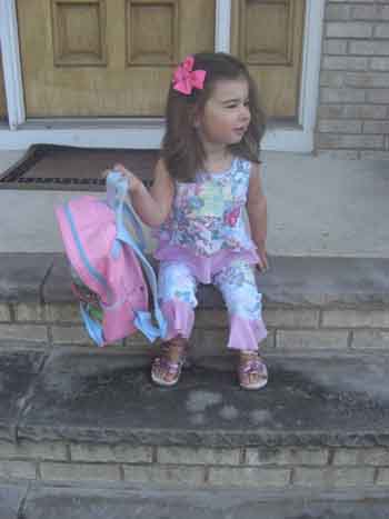 Adorable! She looks like she's raring to go to school- like "Mom, are we leaving yet??"Chat Icon