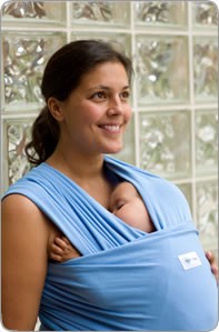 Moby Wrap (with storage pouch)-used 2 times, couldn't get the hang of it. Pale blue. $20