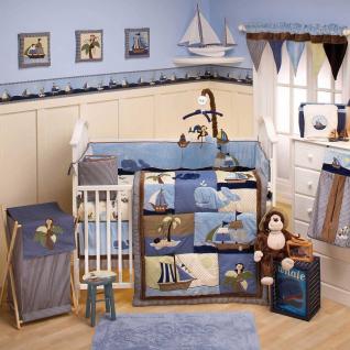 We are doing a gender-neutral monkey-themed nursery, using the Pop Monkey bedding from BRU: