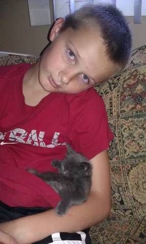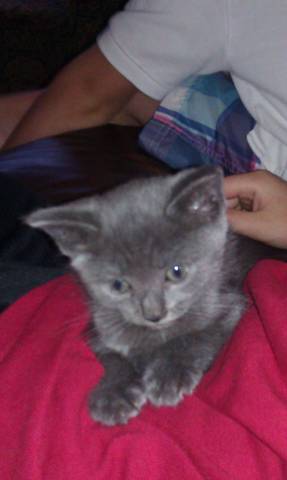grey cats are my favorite! I think they are sooo pretty~!\ what a cutie, congrats!