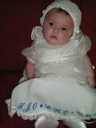 Thanks! The most amazing thing was that the dress was almost all lace (it was a 1969 dress, lol) and I really don't like lace, so she used the under material to make the main part of the dress. She literally took it apart at the seems and re-created the christening gown.