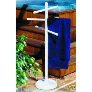 We have a pool house/shed and I bought a big shelf with hooks from home goods I plan on attaching to side of shed to hang the towels on. My sister in law uses a laundry rack and it works too