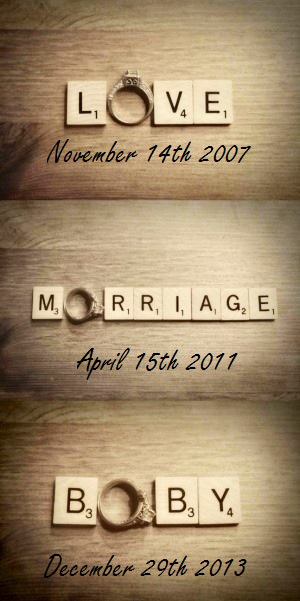 we got married in Vegas in April and we got prego a month later. this was our announcement when we had a Vegas themed BBQ over the summer.