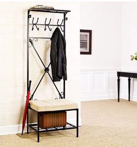 I have this from Walmart. I liked that it had a small footprint because it fits in my mudroom perfectly and has 12 hooks -- we use every single one!