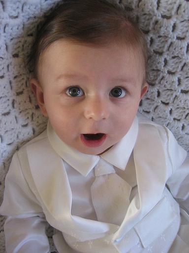 ETA: It had a bonnet but DS has a big noggin so it didnt fit! He also had shoes with little crosses on the bottom but I didnt want to push it the day of pics!