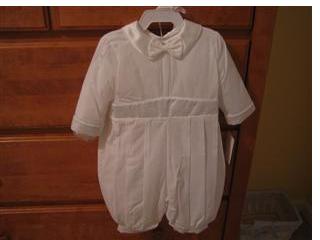 Something similar to this. It was 100% silk. We bought it from Lavender's Blu in Oakdale. We were limited because DS was wearing 24 months at the time. They also had cute gowns at Little Shop of Shamrocks in Islip. Image Attachment(s):