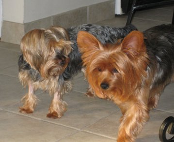 Lexi is on the left side... (Bella is being her usually pi$$y self - she just "LOVES" getting bandanas tied around her neck heheheh).