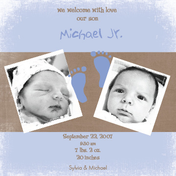 Kudos to Laurie (itslaurie) from Exquisite Production Affairs (Christine's wedding planning gig) for working with me in creating these beautiful birth announcements! She was awesome and did a wonderful job 123!