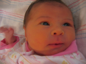 the first one is great she looks so much like you. and what an alert baby!!!! shes so precious. guess its the month for baby girls !!!