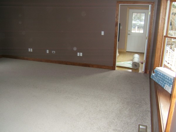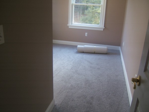 I know that I mentioned that the carpets were installed. Here are some pics of the carpet. Upstairs is all the same color, a light grey (goes with any wall color, whether DD decides to go Goth or Ultra-Fem, and DS goes either Camo, or NFL sports team )