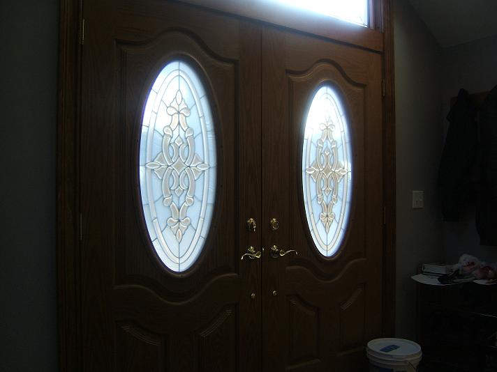 With the film on, the outside of the door looks almost the same, the inside actually highlights the colored glass more, and you can't see through (unless you look through the transom window above the door.... but if you are going to do that, there's nothing I can do to stop you......) Image Attachment(s):